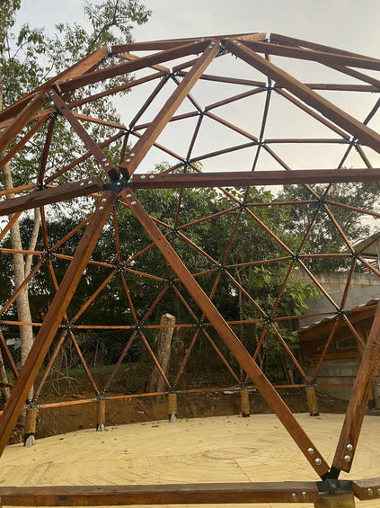 Os domos geodésicos são estruturas tridimensionais formadas por uma rede de triângulos interligados, criando uma cúpula leve, estável e extremamente resistente. Essa geometria única distribui forças eficientes, permitindo construções rápidas e com ótima desempenho térmica e estrutural.